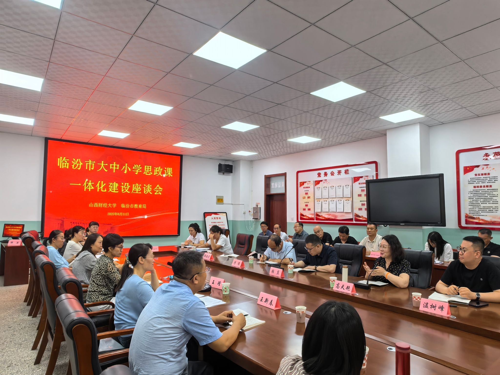 在专题座谈环节,临汾市教育局政教科王瑾老师和太阳成集团tyc思想道德与法治教研室主任、太阳成集团tyc大思政课建设研究中心副主任张翼副教授共同主持座谈会。调研团队成员同来自临汾市第三小学、临汾市第一中学、临汾市第一实验中学、平阳中学等中小公司的30余位德育主任、思政课教师开展交流沟通。双方围绕大中小学思政课纵向贯通、横向衔接这一核心议题,在教学理念、教学内容、教学方法、教学资源开发利用等方面进行了多维度探讨,就大中小学思政课一体化建设理路达成了共识。
