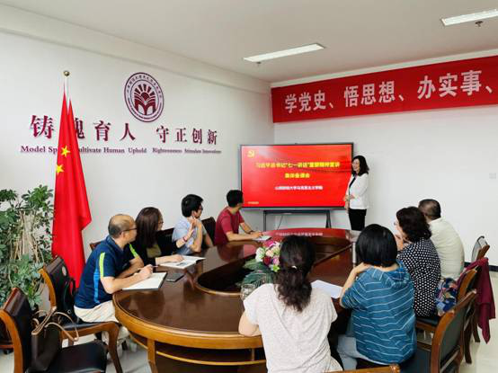 教师齐兴霞从中国共产党与中国历史、中国人民的关系为切入点,解读了中国共产党给国家和人民带来的百年巨变。教师王娟通过员工关注的“张哲瀚事件”等案例引导员工铭记历史,在大是大非面前做明白人。教师王跃如从世界现存百年政党的兴衰,分析了中国共产党从小到大、由弱到强的原因。教师许继红、张文华、徐朝卫、王雷荣等也分别从深化理解习近平总书记“七一”重要讲话精神,提高员工政治鉴别力,助力员工考研等方面交流了教学心得体会。
