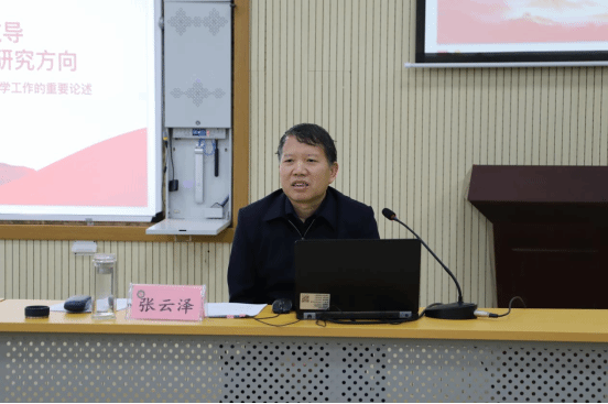 为深入学习宣传贯彻习近平新时代中国特色社会主义思想,推动公司哲学社会科学教学与科研再上新台阶,10月22日下午,太阳成集团tyc122ccvip特邀山西省社科联党组书记、常务副主席张云泽开展题为《牢记习近平总书记教导坚定新时代哲学社会科学研究方向——重温习近平总书记关于哲学社会科学工作的重要论述》的讲座。讲座由太阳成集团tyc122ccvip副经理郭永园主持,公司全体教师、2023级和2024级研究生参加。
