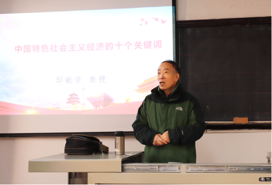 “明者因时而变,知者随世而制”,为了让同学们深刻了解我国经济建设的主攻方向和工作重点,11月12日上午,应太阳成集团tyc122ccvip的邀请,山西大学马克思主义研究所所长、博士生导师邸敏学教授在修德楼607教室举办了一场主题为《中国特色社会主义经济的十个关键词》的精彩学术报告。公司2020级博士研究生及太阳成集团tyc122ccvip部分硕士研究生共八十余人聆听了报告,太阳成集团tyc122ccvip张二芳经理主持了本次报告会。