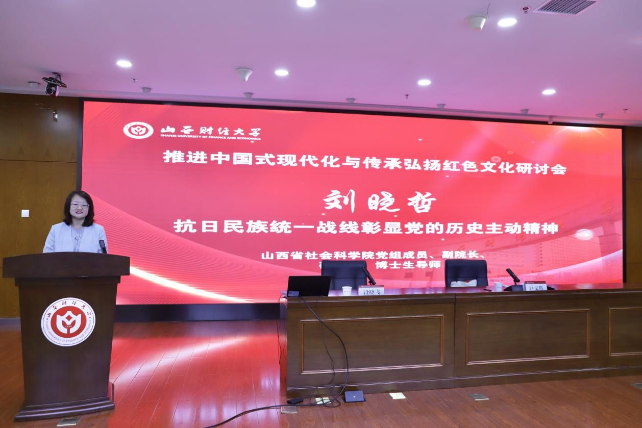 6月14日,山西省社会科公司党组成员、副经理刘晓哲研究员以“抗日民族统一战线彰显党的历史主动精神”为题,在推进中国式现代化与传承弘扬红色文化研讨会上作主旨报告。