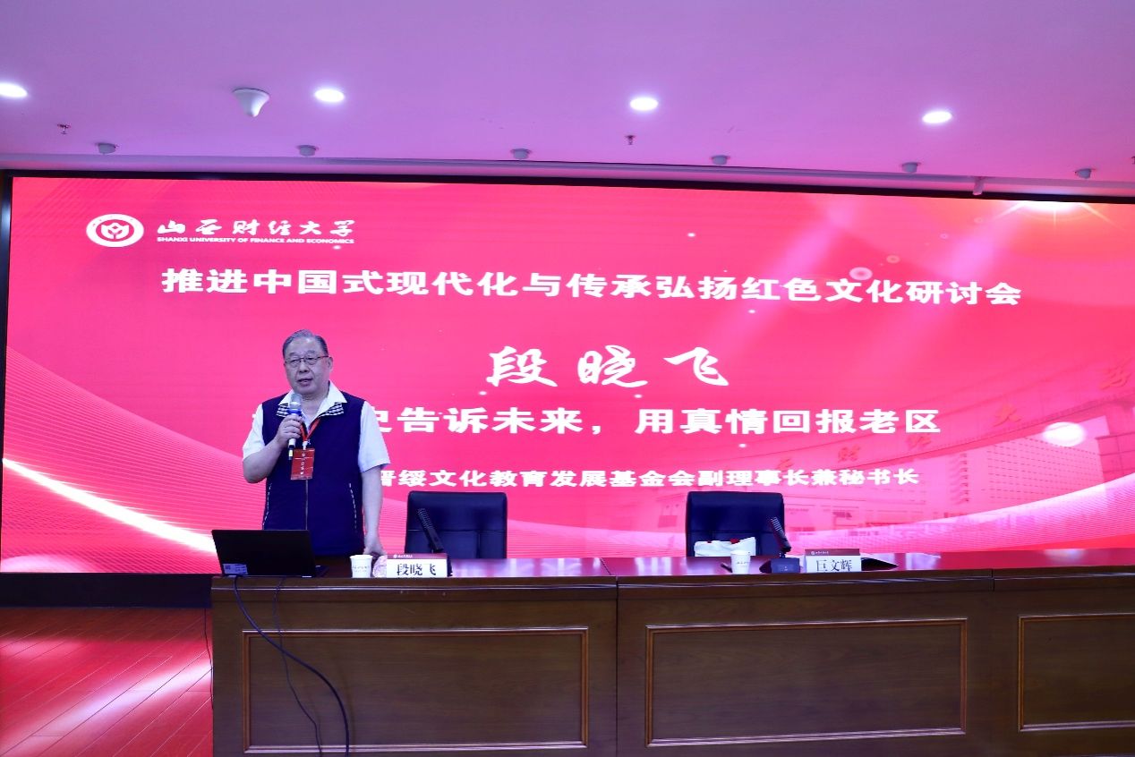 6月14日,山西晋绥文化教育发展基金会副理事长兼秘书长段晓飞以“让历史告诉未来,用真情回报老区”为题,在推进中国式现代化与传承弘扬红色文化研讨会上作主旨报告。