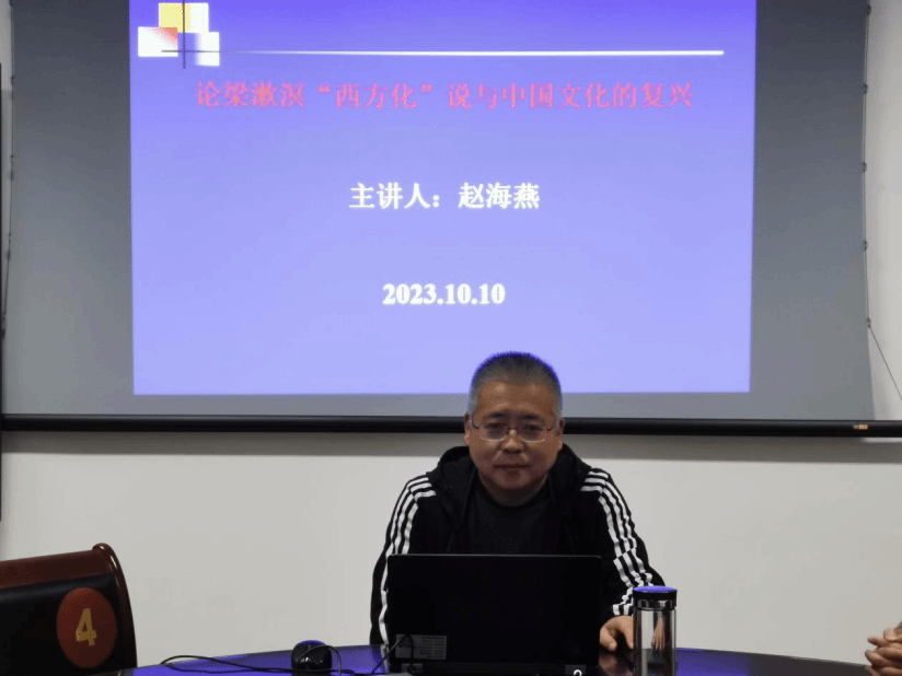 10月10日19:00-21:00,公司马克思主义基本原理学科团队在院小会议室举行讲座活动。赵海燕副教授做了题为《论梁漱溟“西方化”说与中国文化的复兴》的学术报告。本学科方向部分教师和研究生参加了此次活动。讲座由学科带头人李鹏教授主持。