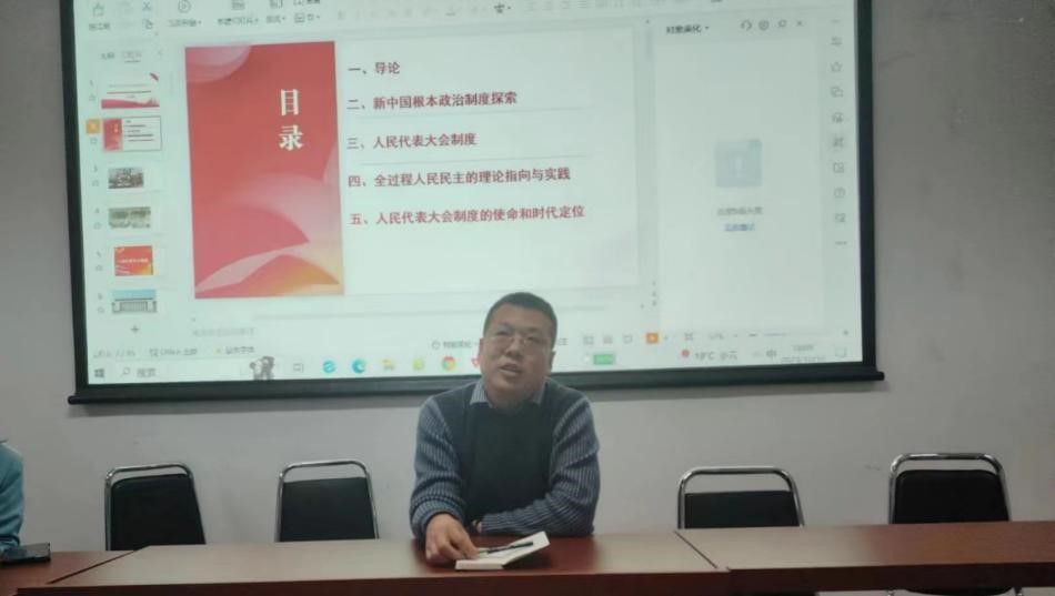 在本次活动中,白琦瑞老师围绕“全过程人民民主的理论指向与实践”这一主题以及自身第十四届全国人大代表的履职实践,从新中国根本政治制度探索、人民代表大会制度、全过程人民民主的理论指向与实践和人民代表大会制度的使命和时代定位等四个方面进行了论述。白老师系统论述了人民代表大会制度的来源、产生与发展的历史过程,指出中国共产党带领广大人民群众在艰辛的探索与实践中摸索出和建立了人民代表大会制度。白老师介绍了全国人民代表大会与政治协商会议的联系与区别、直接民主与间接民主的关系,并就人民代表的职责和义务结合自身履职实践深刻阐述。白老师认为, “人民代表大会制度”从根本上讲,是一种谋求“国家富强、人民幸福”的制度,是保证国家政治生活既充满活力又安定有序的制度,是支撑“国家治理体系和治理能力现代化”的根本政治制度。