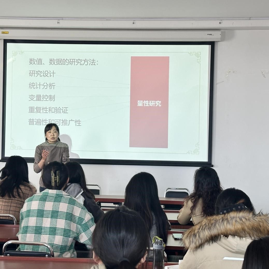 在讲座中,白洁老师以人格测试的心理量表为例,论述了量性研究和质性研究的内涵及区别,强调要坚持问题导向意识,带着问题去研究。其次,白洁老师详细介绍了论文问卷的类型、设计原则以及常见的注意事项等,引导师生了解问卷编制的重要性和方法。此外,她以具体的问卷为例,分享了自己在问卷设计方面的经验和技巧,为大家提供了实用的指导和建议。最后,白洁老师以数据分析及解释为主线进行讲解,详细介绍了数值和数据的处理和分析,并着重强调数据和样本量的增强能够提高研究的可信度。在此次活动中,公司师生积极参与互动环节,现场充满了思想碰撞的火花,在引发大家深度思考的同时,也使得参会师生对问卷编制有了更为系统全面的认识。