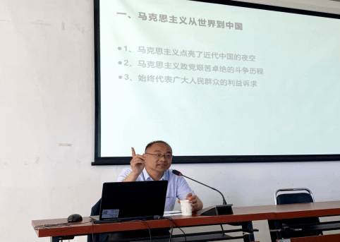 谢忠强教授围绕 “马克思主义从世界到中国”“屹立东方,闪耀世界”“马克思主义百年大党的能力与气魄”三个维度,阐述了马克思主义在中国的传播、马克思主义政党艰苦卓绝的斗争历程以及马克思主义始终代表广大人民群众的利益诉求;用一个又一个生动的历史案例梳理回顾了中国共产党百年波澜壮阔的历史进程,取得的伟大成就、积累的宝贵经验及其深刻启示,科学系统地回答了马克思主义为什么行、中国共产党为什么能、中国特色社会主义为什么好这一真理,引导大家树立正确的党史观和大历史观。