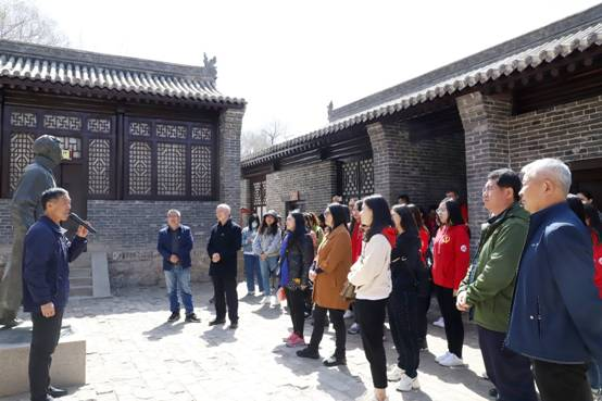 在庄严的高君宇铜像前、鲜红的党旗下,师生党员们重温入党誓词,用铮铮誓言诠释了学习先驱革命精神,表明为党的事业不懈奋斗的坚定决心。在高君宇故居纪念馆,这位革命先驱身着长衫,手握书卷,尽显当年为共产主义事业奔走呼号的风貌。在馆长史锦明的讲解下,大家专注聆听了高君宇投身革命事业,传播革命思想,领导爱国运动的光辉事迹,仿佛置身于那硝烟弥漫、战火连天的革命峥嵘岁月中。“高家祖辈就有拾金不昧的故事载入县志,在良好家风的言传身教下,高君宇成长为一个正直、有抱负的青年。娄烦县峰岭底村的高君宇故居,是高君宇16岁以前生活和学习的地方。他奔走革命后,也曾多次回乡,在这里秘密从事党的活动。‘我是宝剑,我是火花,我愿生如闪电之耀亮,我愿死如彗星之迅忽。’这既是高君宇生前自题相片的一句话,也是他壮丽一生的写照。”在慷慨激昂的讲解中,大家开始走进高君宇,驻足感受他用生命铸就彪炳千秋的丰功伟绩,用心领会他在短暂的年华里谱写出的辉煌人生篇章。