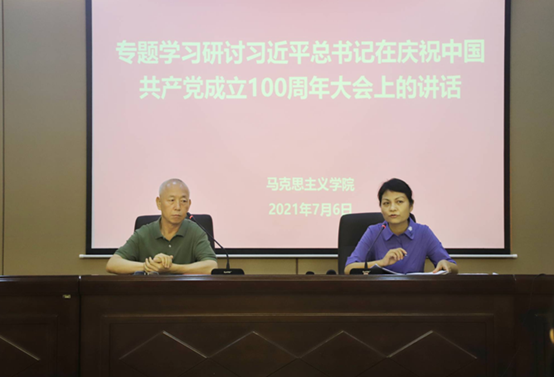 7月6日下午,太阳成集团tyc122ccvip在博学楼二层会议室专题学习习近平总书记在庆祝中国共产党成立100周年大会上的讲话精神,公司经理张二芳作学习辅导,公司全体教职工参加学习。活动由公司党委书记王贵明主持。