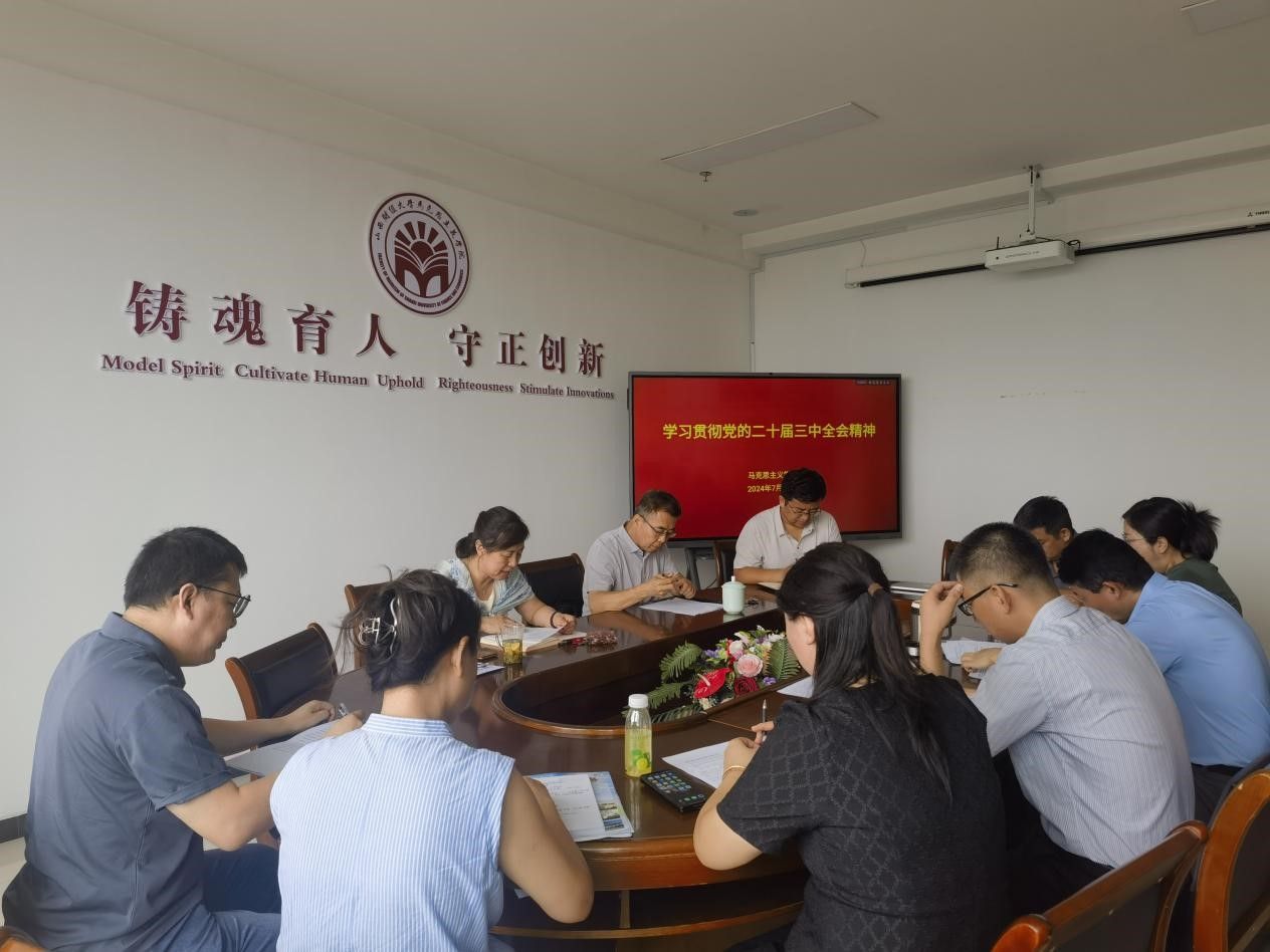 党委书记马晓娟主持会议并强调,党的二十届三中全会围绕中国式现代化科学谋划了进一步全面深化改革的总体部署,既是党的十八届三中全会以来全面深化改革的实践续篇,也是新征程上推进中国式现代化的时代新篇,对于中国特色社会主义事业发展具有重要的指导意义。全院要把学习贯彻党的二十届三中全会精神作为当前和今后一个时期的首要政治任务,党委领导班子、党支部书记带头,发挥基层党组织政治功能和组织功能,带动全院师生迅速掀起学习热潮,引导广大师生坚决拥护和支持党中央的重大决策部署,积极推动公司工作改革创新,为公司的高质量发展注入新的活力和动力。