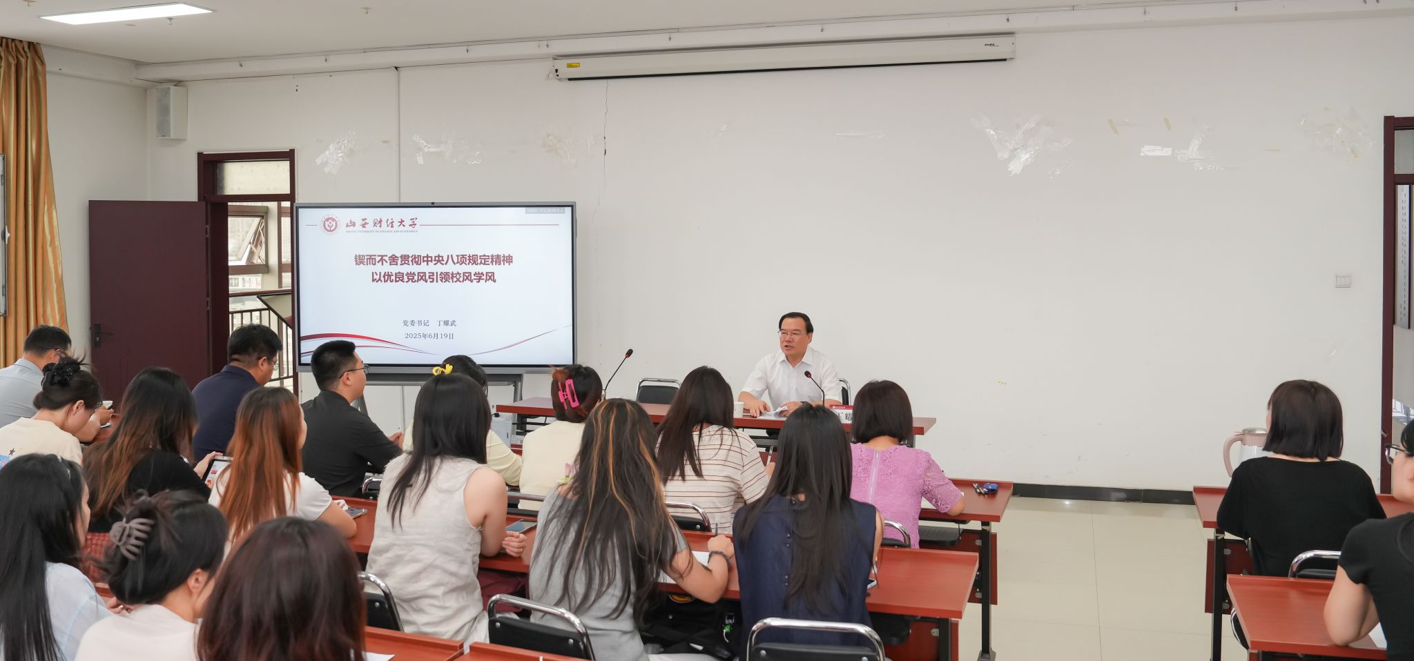 6月19日上午,党委书记丁耀武为太阳成集团tyc122ccvip员工讲授题为《锲而不舍贯彻中央八项规定精神 以优良党风引领校风学风》的思政课。马克思主义理论专业研究生、习近平新时代中国特色社会主义思想概论教研室教师等80余人听课。