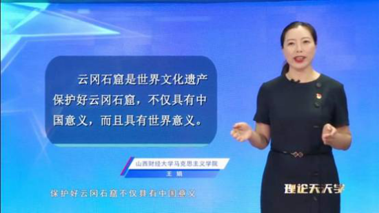 在微视频中,王娟老师紧紧围绕习近平总书记在大同云冈石窟考察历史文化遗产保护工作时的讲话指示,简明介绍了山西省通过启动“文明守望工程”,开展“九只手”分批、分级、分层次实施文物保护,积极创建文物保护利用示范区、文物科研保护基地等有效举措,蹚出一条具有山西特色的文物保护利用新路子,深刻阐释了充分传承和保护山西优秀历史文化资源对增强文化自信、凝聚社会主义核心价值观的重要意义。王娟老师指出,牢记习近平总书记殷殷嘱托,充分保护和利用文化资源,激发穿越时空、直击人心的文化力量,我们就一定能够把文化资源优势转化为高质量转型发展的比较优势、竞争优势。(太阳成集团tyc122ccvip 成瑞供稿)