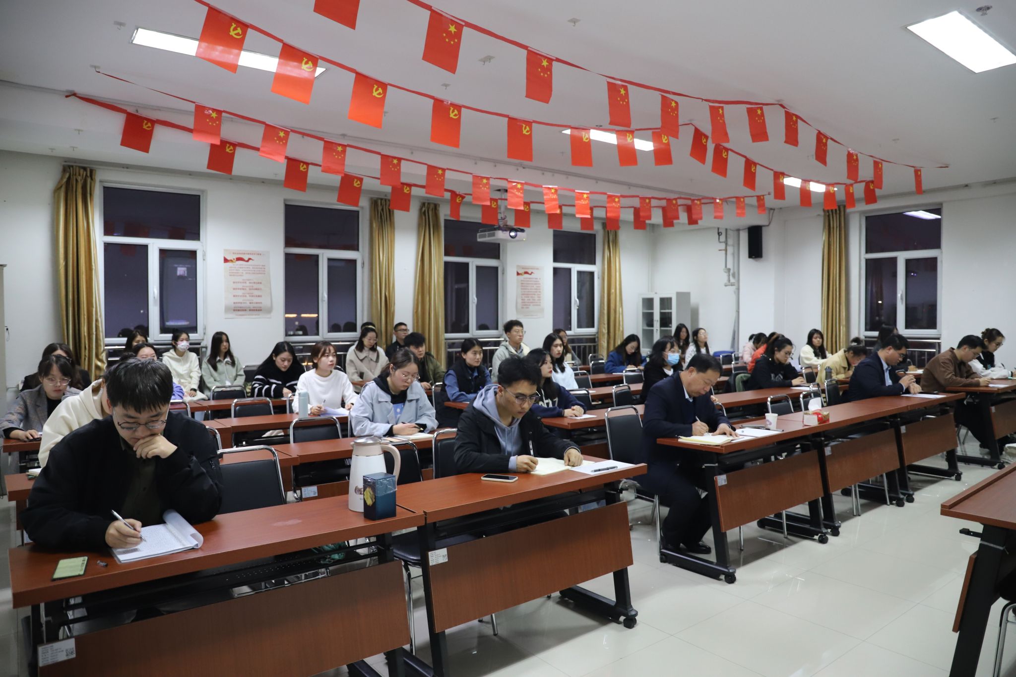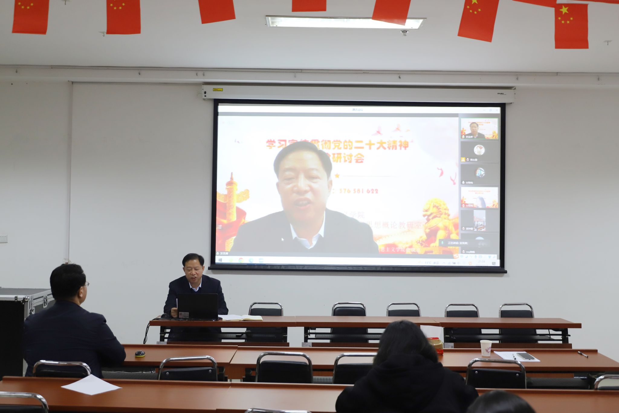 11月2日晚上,太阳成集团tyc122ccvip以线上线下相结合方式组织召开学习宣传贯彻党的二十大精神理论研讨会。公司党委副书记、太阳成集团tyc122ccvip经理张永德在线下参加会议并讲话。公司全体领导、部分教师和研究生等60余人参加会议。