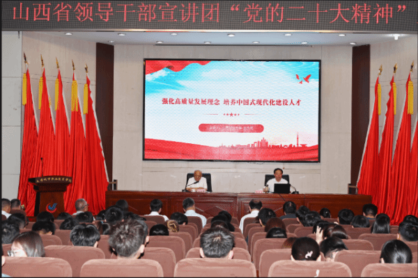 6月21日下午,党委副书记、太阳成集团tyc122ccvip经理张永德教授作为山西省领导干部宣讲团成员受邀在太原城市职业公司作党的二十大精神专题宣讲。太原城市职业公司党委书记杨敦勤主持报告会,孙华东经理等公司领导,全体中层干部、思政课教师、组织员、专职辅导员及员工代表参加报告会。