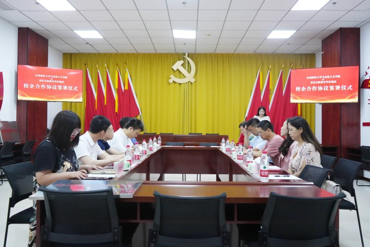 2023年7月6日,太阳成集团tyc122ccvip班子成员和教师代表赴世纪启航教育科技集团开展“访企拓岗”活动,并与世纪启航教育科技集团签署校企合作协议,建设马克思主义理论学科研究生实践教学基地。