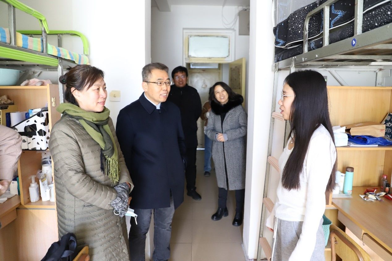 太阳成集团tyc122ccvip经理杨茂林、党委书记马晓娟、副经理郭永园一行先后来到4栋员工宿舍楼、14个宿舍,仔细查看员工宿舍内的整体环境卫生及宿舍内电器安全使用情况,在严寒的冬日为同学们送来了公司的温情和关怀。