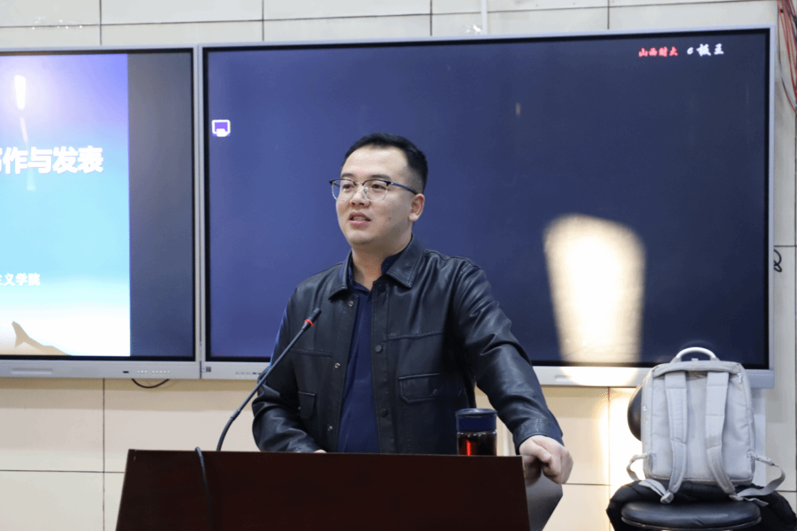 讲座主要围绕学术论文的选题、题目拟定与框架构思、学术论文的写作、学术论文的投稿与发表四部分展开。首先,王老师结合自身博士论文选题和发表核心期刊文章的过程,为同学们介绍了学术论文选题的方法,王老师指出,一方面要注意学科论文选题的权威依据,例如官方权威文件和习近平总书记系列重要讲话读本,另一方面要关注社科基金项目与核心期刊的内容,以此作为学位论文选题的参考对象。其次,王帅老师介绍了题目的拟定与框架构思,他强调到论文题目要以小见大,切忌过于空泛,难以把握,且确定论文题目前必须在前期阅读大量的文献,做好笔记,为之后的论文写作积累素材。在框架构思方面,他用一些例子向同学们分享了发生论、历史论、体系论等几种常见的研究维度,讲述了“三重逻辑论析”“三维度审视论析”“内在机理与实现路径”“现实问题研究”四种论文框架类型。之后,王老师对论文具体写作方法进行了详细阐述,他从一篇论文的摘要、关键词、正文到最后的注释和参考文献分别给出自己的建议,提出论文写作应坚持的四点原则,其中,针对马克思主义中国化和思想政治教育方向的同学,他特别讲到:“要注意论文的时效性,抓住时效就是抓住机遇。”最后,王帅老师向同学们介绍了论文投稿与发表需要注意的事项,对于同学们在论文写作时遇到的一些问题,他指出:“临渊羡鱼,不如退而结网。”以这句结语勉励同学们扎根学术前沿,立足专业基础,以饱满的热情投身到学术研究中去。
