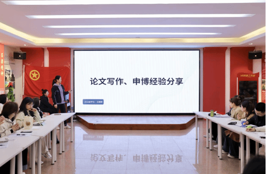汇智座谈,经验领航。在座谈会上,2022级优秀员工代表进行生涯规划经验分享。韩英同学结合自身在公司宣讲团锻炼的经验和后续求职历程,强调了表达能力在求职中的关键作用,也分享了口语表达的一些提升措施,助力同学们在职业探索中清晰展示自我。随后,王宁悦同学围绕学术科研与求职就业发表了自己的看法。她强调做科研要抓住“黄金期”,珍惜少年时,争分夺秒做研究。同时,她还向在座人员介绍了银行招聘流程和岗位要求,为有求职意向的同学提供了参考。紧接着,赵原皓同学从“厚积薄发”与“不预则废”两大主题切入,阐述创作不仅需要行文简练、生动有趣,还要靠灵感碰撞和阅读思考。最后,王颖嵘同学分享了论文写作经验与申博准备工作的要点。谈及论文写作,她建议同学们要分阶段推进,从选题、构思到撰写、修改,保持环环相扣。在申博经验分享中,她也全方位地向同学们答疑解惑,为有志于科研深造的同学们指明了方向。