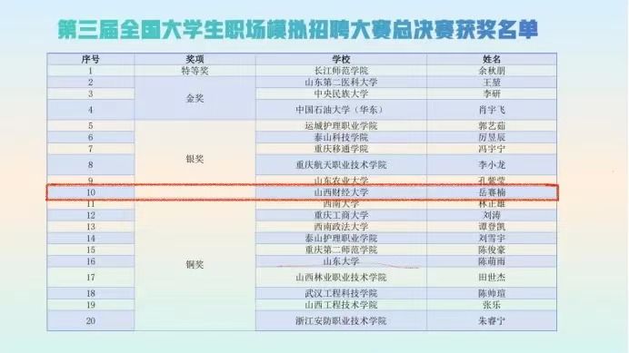 喜报!公司学子岳赛楠在第三届全国老员工职场模拟招聘大赛斩获佳绩