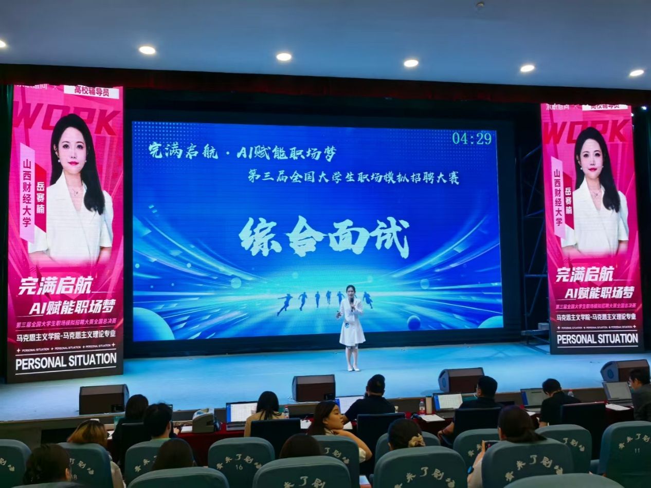 决赛现场,岳赛楠同学以“遇见光·追随光·成为光——我志愿成为一名高校辅导员”为主题,在“主题陈述”“综合面试”“天降offer”三大环节中,从自我认知、行业分析、岗位定位、发展路径等多方面进行深入阐释,凭借自信的表达呈现、扎实的知识储备、清晰的逻辑思维以及专业的分析能力,展现出卓越的临场应变水平,赢得专家评委一致认可,最终获得全国银奖的好成绩。此次职场模拟招聘赛事之旅,公司学子充分发挥了马克思主义理论学科专业优势,在社会广阔天空中勇敢放飞个人职业梦想。